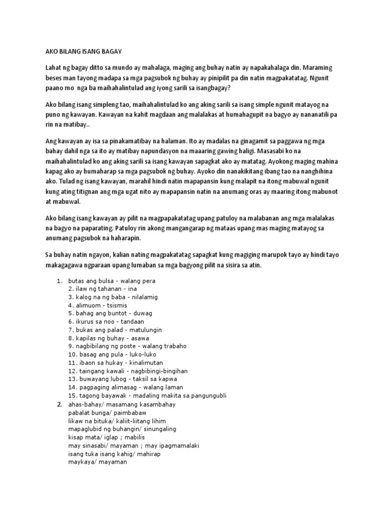 Mga bagay na maihahalintulad sa iyong sarili. 1 on a question Anong hayop ang maihahalintulad sa iyong sarili. Halimbawa pagtanggi sa di mabuting gawain ng iyong kaibigan o barkada paano ito makatutulong sa iyo sa paghahanda sa susunod na yugto ng buhay 2 See answers takemovies85 takemovies85. Alam naman natin na ang mga aso ay gagawin nilang lahat para maprotektahan lamang ang kanilang mga amosila rin ang nagsisilbing libangan at kalaro ng mga taong nag-aalaga sa kanila sa madaling sabi sila ang dahilan kung bakit nalilibang ang kanilang mga amo at dagling.