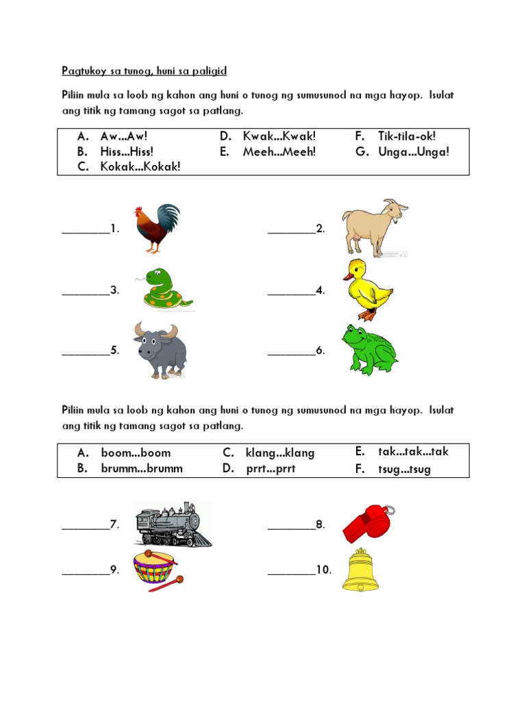 30062013 Mga Tunog ng Hayop Worksheets. Ang mga hayop na ating nakikita sa kapaligiran ay may kanya kanyang tunog na nalilikha. Human translations with examples.