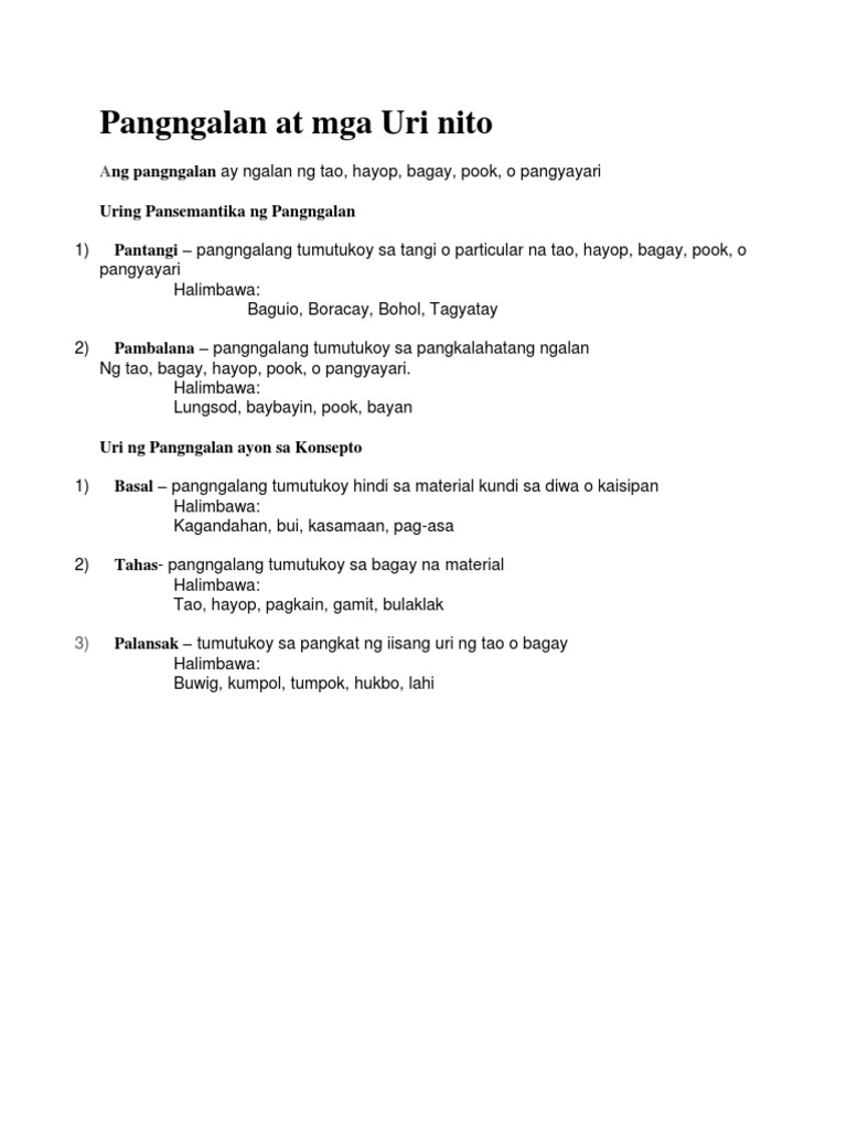 Dalawang uri ng pangngalan 1. PANTANGI tumutukoy sa tiyakat tanging ngalan ng tao bagay lugarhayop gawainat pangyayari. Scribd is the worlds largest social reading and publishing site.